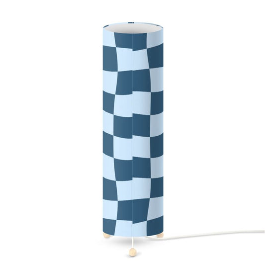 Mid Blue and Pastel Blue Warped Checkerboard Standing Floor Lamp