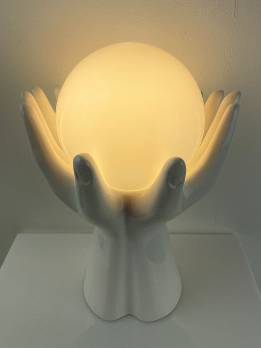 Sold outAll white Phoenix pottery hands lamp