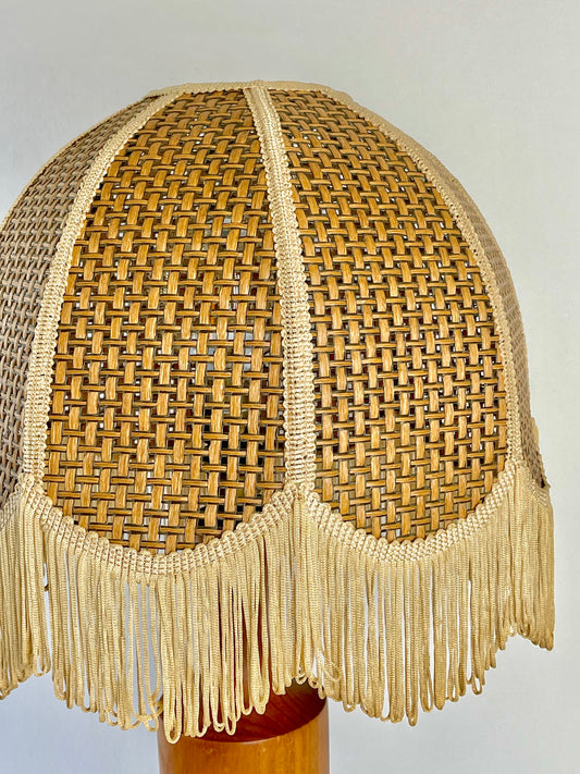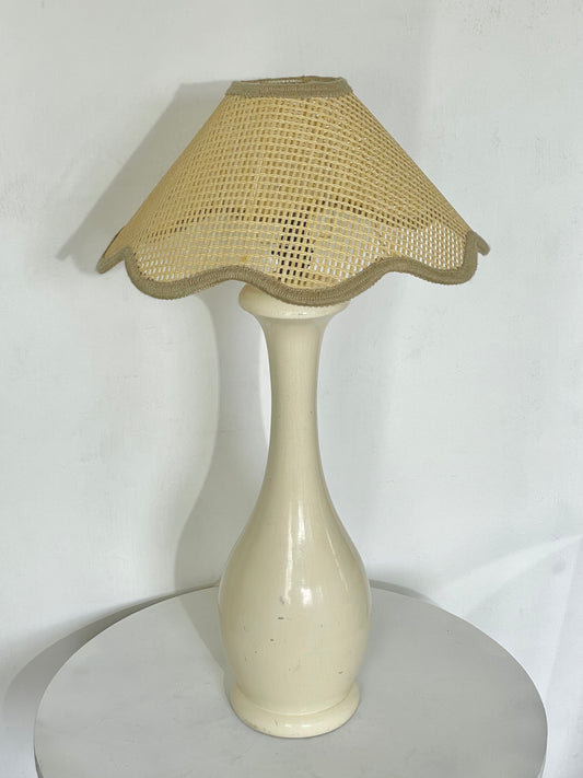 Vintage wooden lamp with scalloped shade