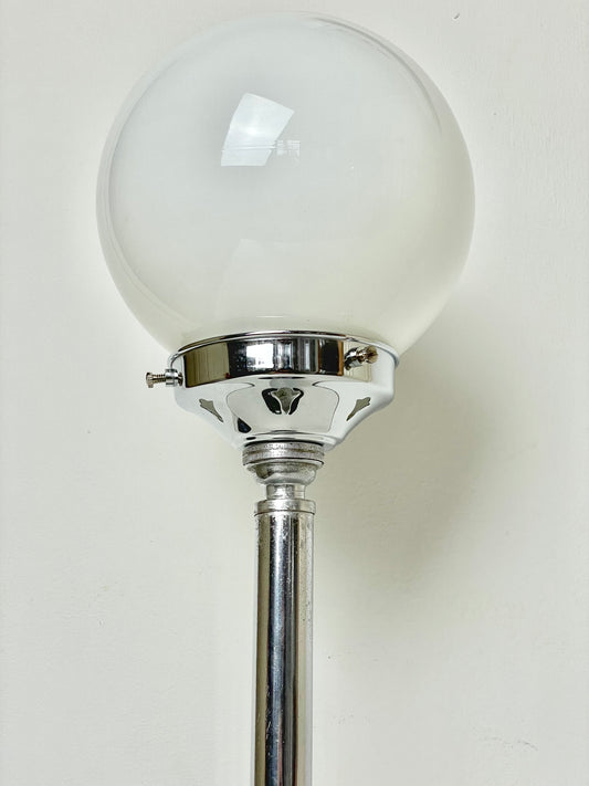 Sold outWalnut and chrome Art Deco lamp