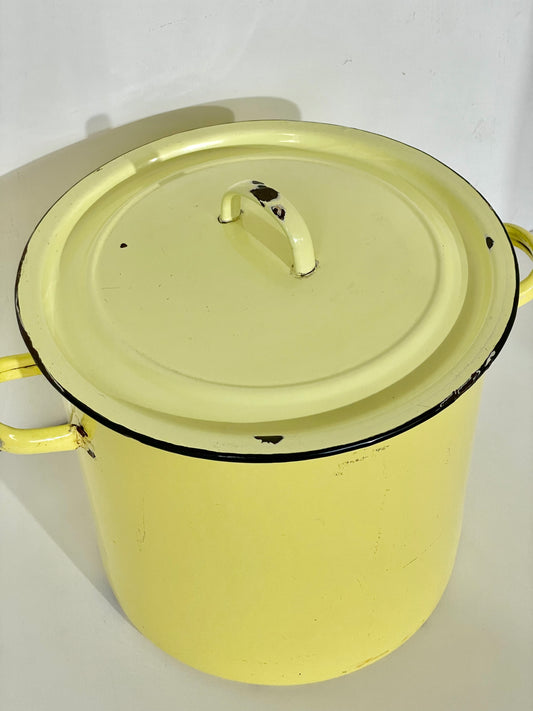 Sold outVintage yellow enamel bin