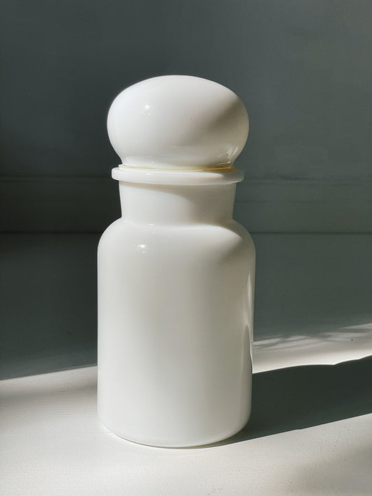 Sold outWhite milk glass airtight container
