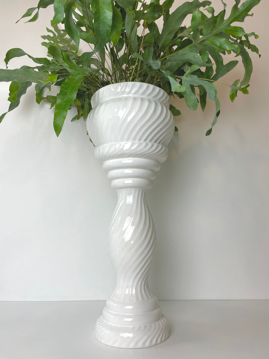 Sold outWhite swirl jardiniere with stand
