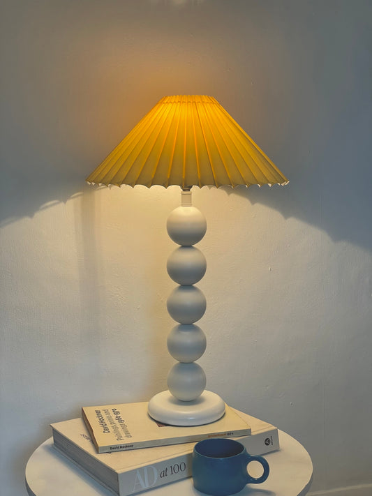 White bobbin lamp with pastel yellow shade