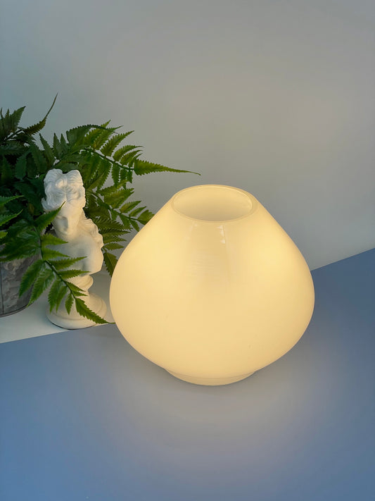 White glass bulbous mushroom-esque lamp