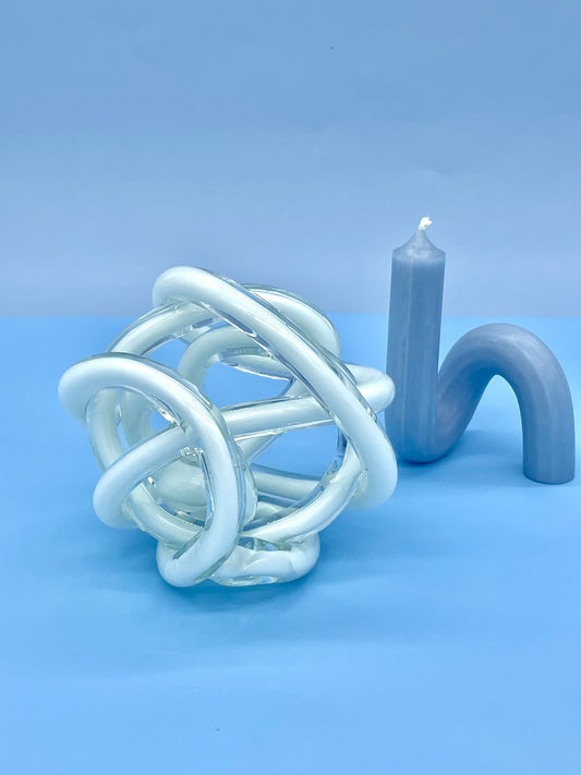 Sold outWhite cased glass twisted knot